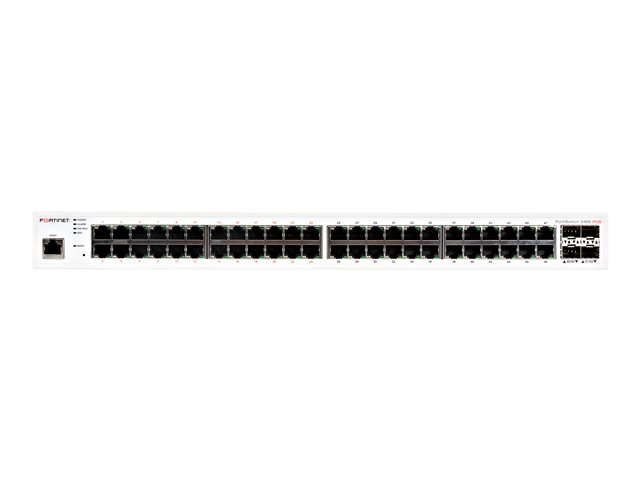 FortiSwitch-248E-FPOE Layer 2/3 FortiGate switch controller compatible PoE+ switch with 48 x GE RJ45 ports, 4 x GE SFP, with automatic Max 740W POE output limit