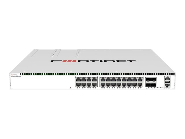 FortiSwitch-624F-FPOE Layer 2/3 FortiGate switch controller compatible PoE 802.3bt switch with 24x 5G RJ45 ports, 4x 25G SFP28 and MACSec. Max 1400W POE output limit